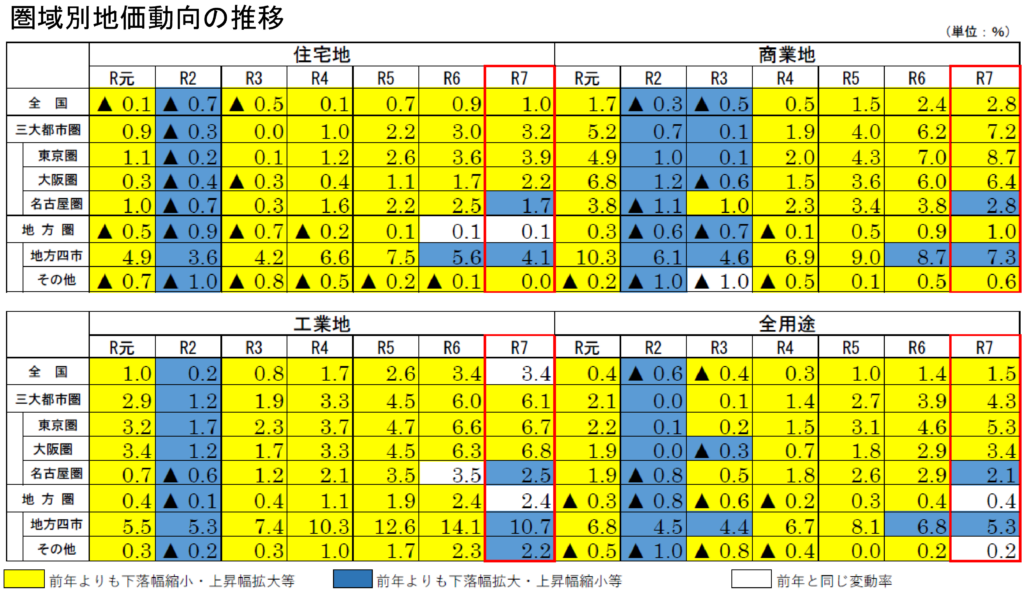 全国的に「バブル的な一部の高騰」ではなく、「広範囲にわたる底上げ」が見られるのが特徴です。