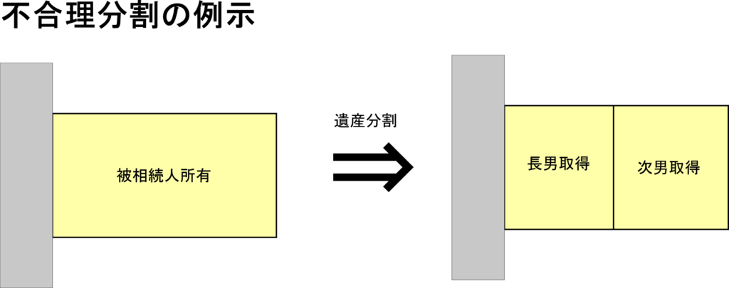 このようなケースは、相続や贈与にあたって形式的に区画を分けたとしても、経済的・利用上の独立性を欠くため、不合理分割と判断される典型例です。